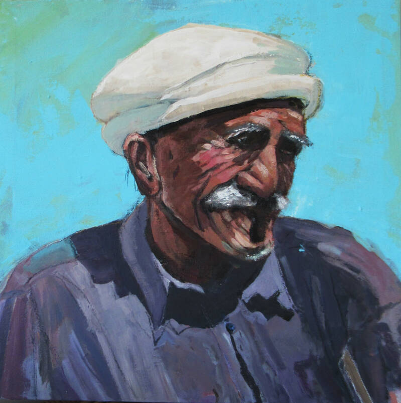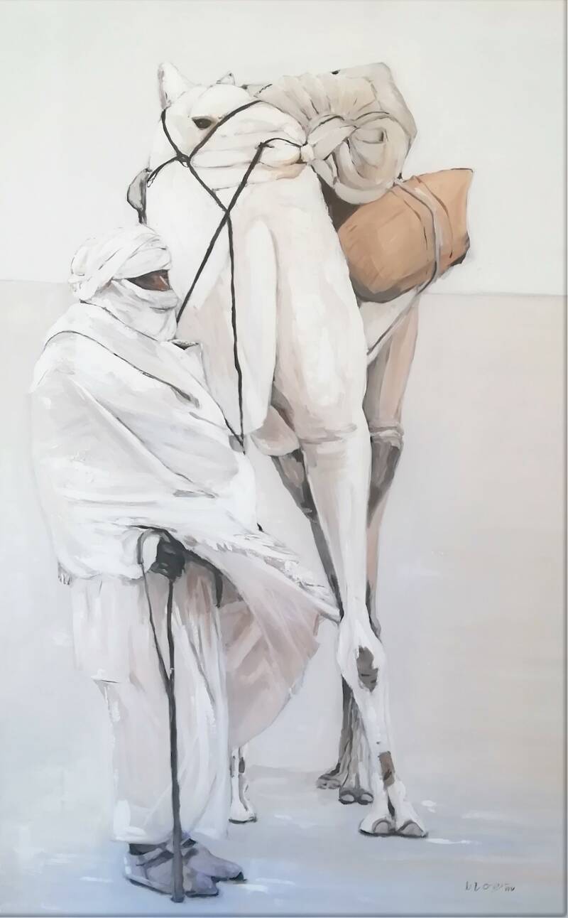 Bedoeïn met kameel - Acrylverf op canvas doek – niet ingelijst 115x75 cm