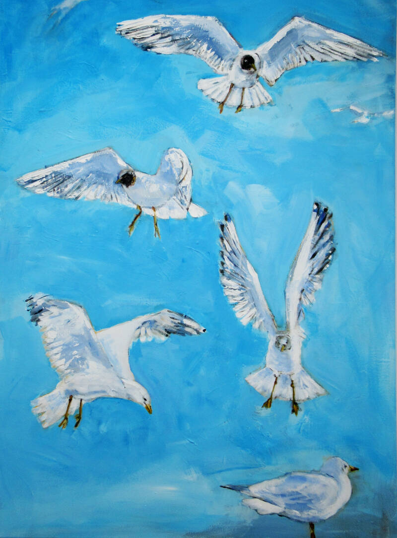 Meeuwen Acryl op canvas, niet ingelijst
